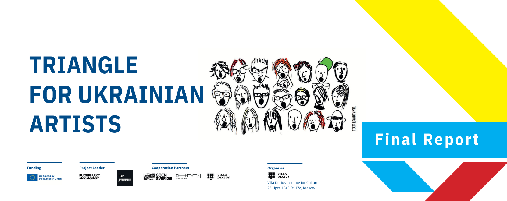 Zapraszamy do lektury raportu podsumowującego projekt Triangle for Ukrainian Artists (TUA) – inicjatywę realizowaną w ramach programu Creative Europe pod kierunkiem Kulturhuset Stadsteatern (Szwecja) we współpracy z Willą Decjusza, Rikstolvan, Scensverige i Teatrem Dramaturgów z Kijowa.